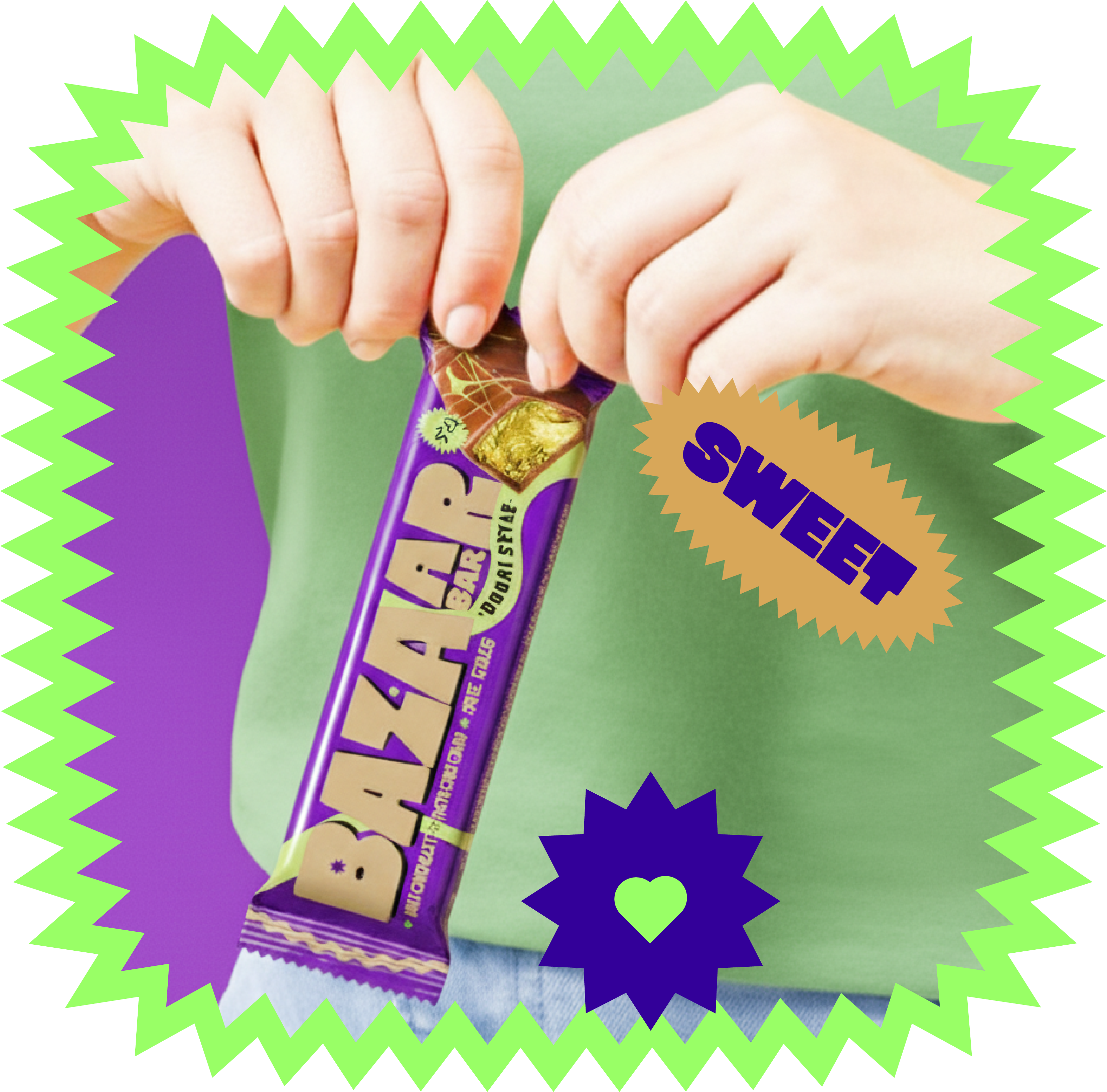 Born bold, wrapped in royal purple, and screaming gold, we’re here to make chocolate impossible to ignore. Every bar is crafted with 100% Belgian chocolate — rich, smooth, and unapologetically indulgent. We load it with over 30% Grade-A Gaziantep pistachios, the real green gold of the Middle East. And we finish it with a touch of knafeh magic, for a flavor that’s anything but ordinary.